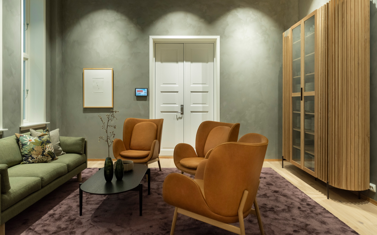 SNN-Rødbakkvartalet Project: As an integral member of the interior architectural team, we undertook a detailed design process for a prominent Norwegian bank. The scope of work encompassed office spaces, lobbies, meeting rooms, reception areas, and communal social spaces. Our main responsibility was to create interiors that were not only functional but also authentically represented the bank’s brand values. Collaborating with Zinc and Fra Innersida, we carefully selected materials and crafted design concepts that elevated the bank’s prestigious image.